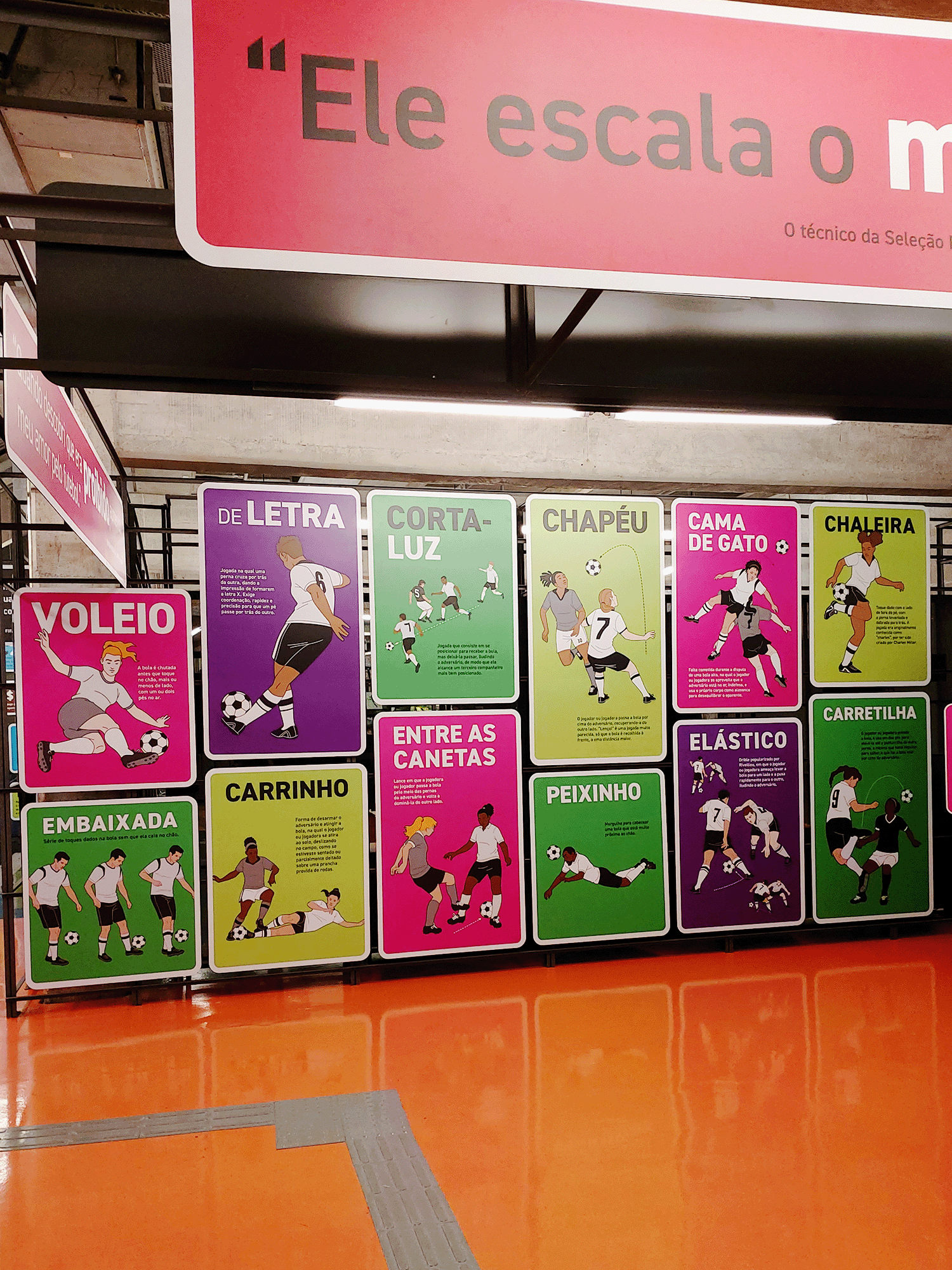 Together with my friend Bruno Niquet, under the coordination of Rita Faria, and with illustrations by the talented team at Labareda Comunicação & Design, we redesigned the entire exhibition — with a stronger focus on the diversity that truly defines football. More women, more ethnicities, more identities, more plurality — just as the game really is.