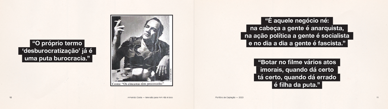 Identidade Visual do documentário longa metragem Armando Costa: "Televisão para mim não é bico", dirigido por Victor Vasconcellos.