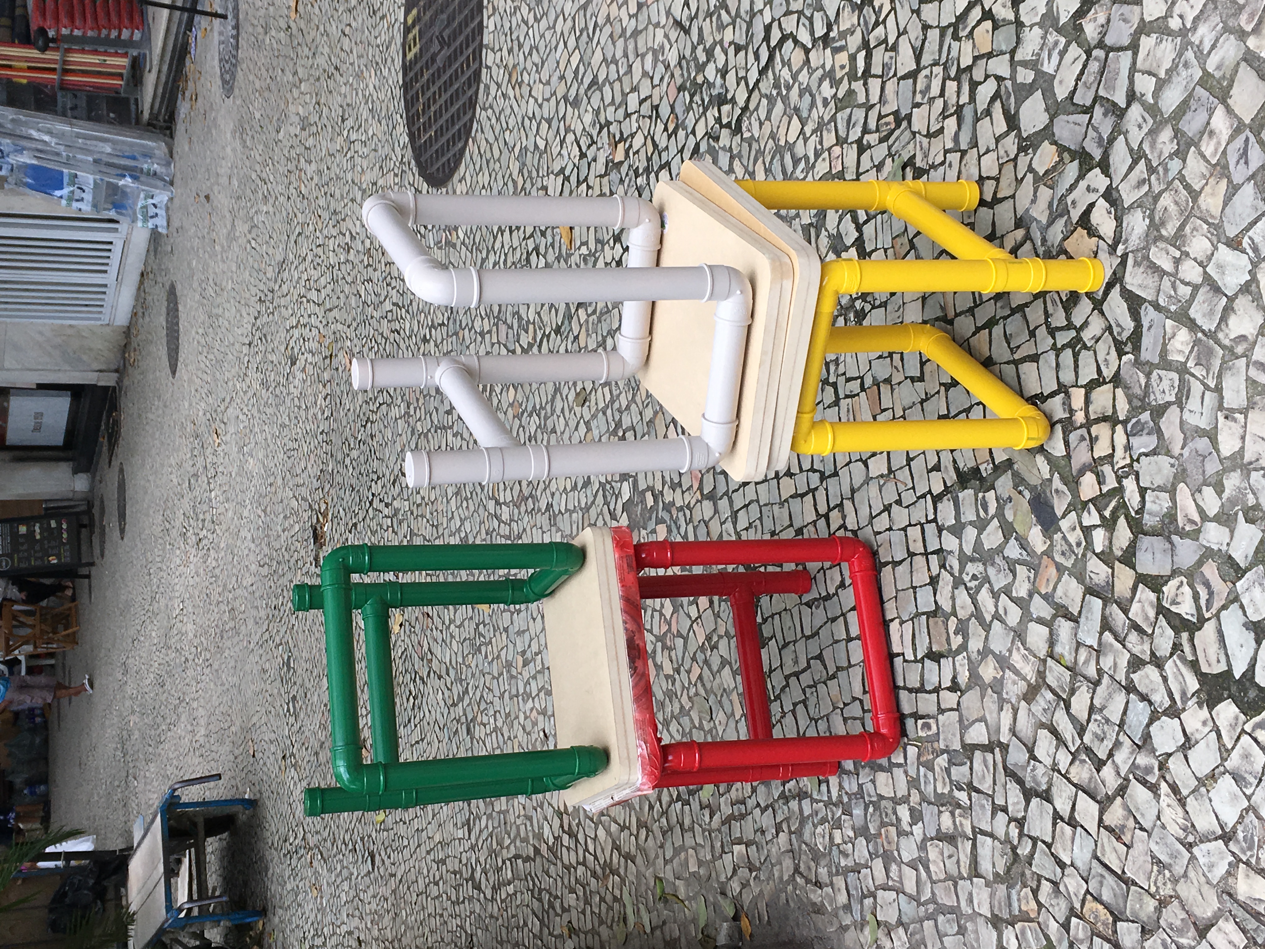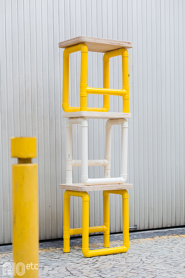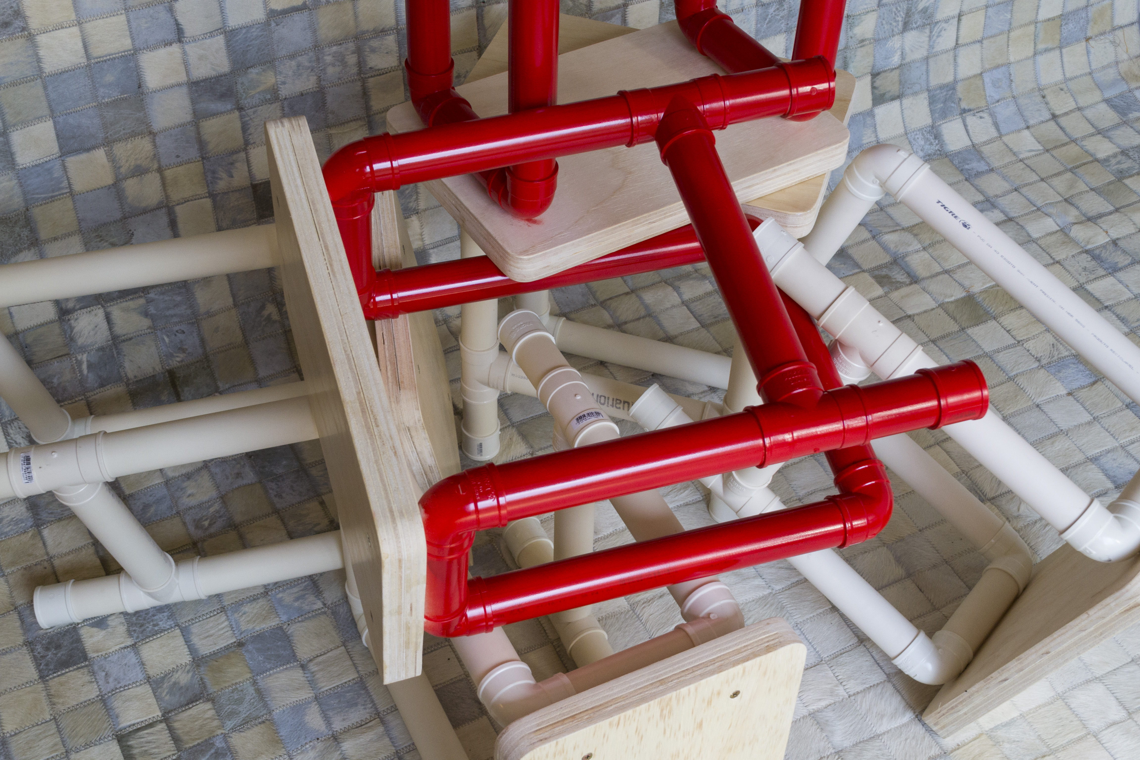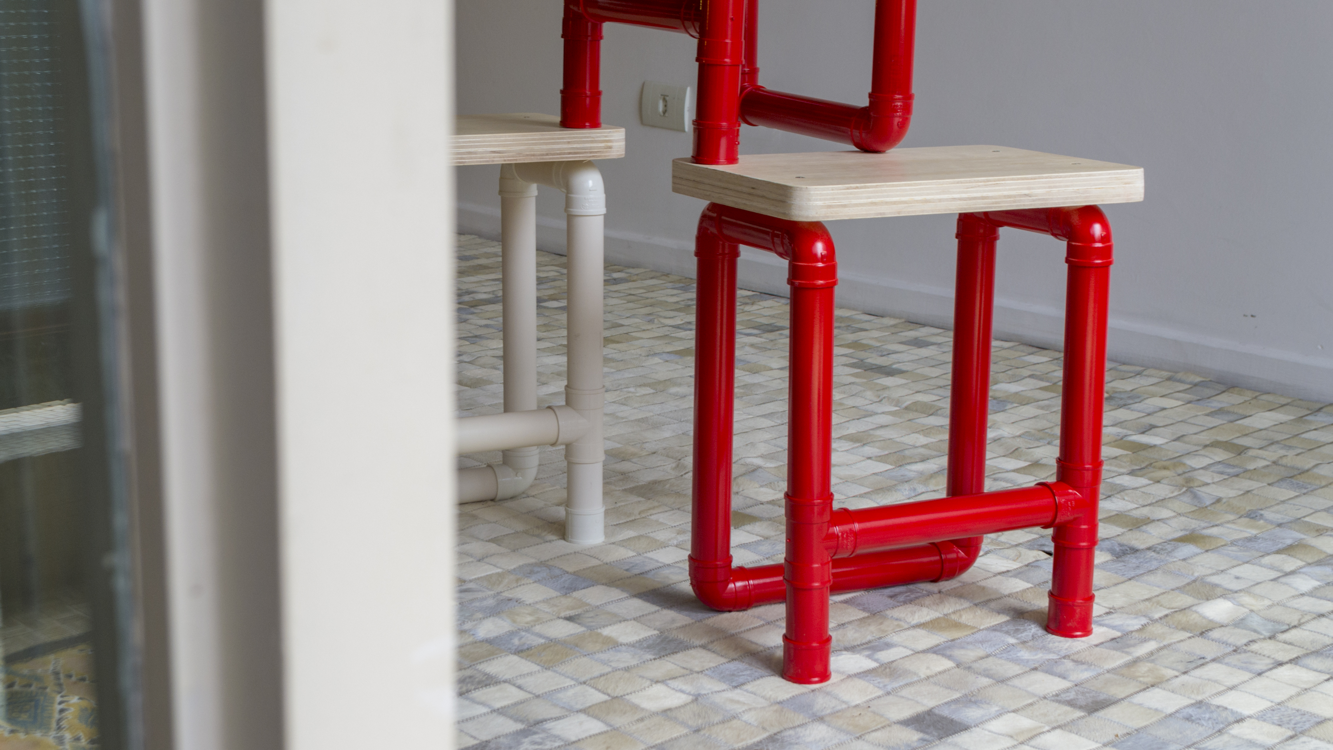 Projeto autoral de mobiliário feito com tubos e conexões de PVC. 2018.
