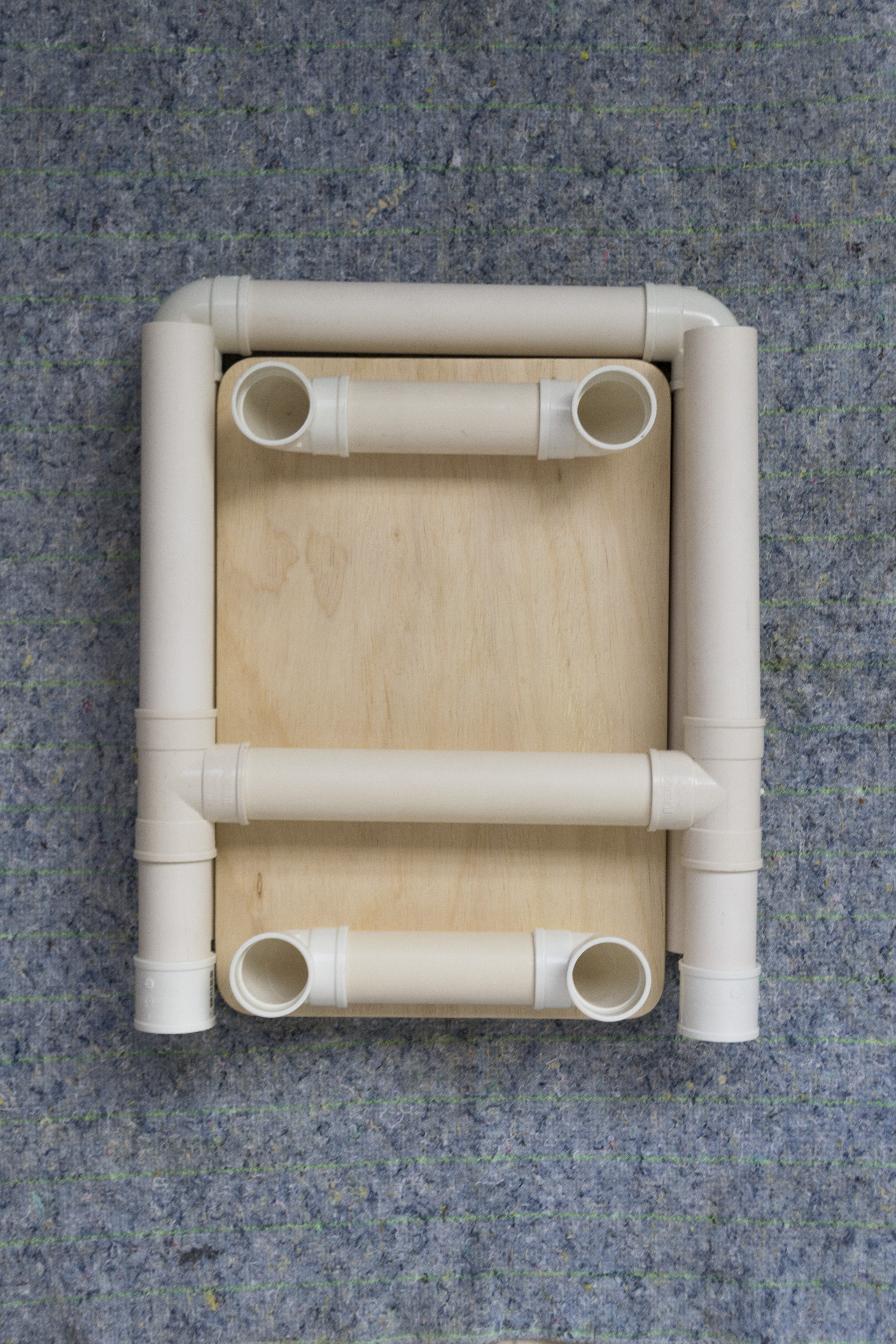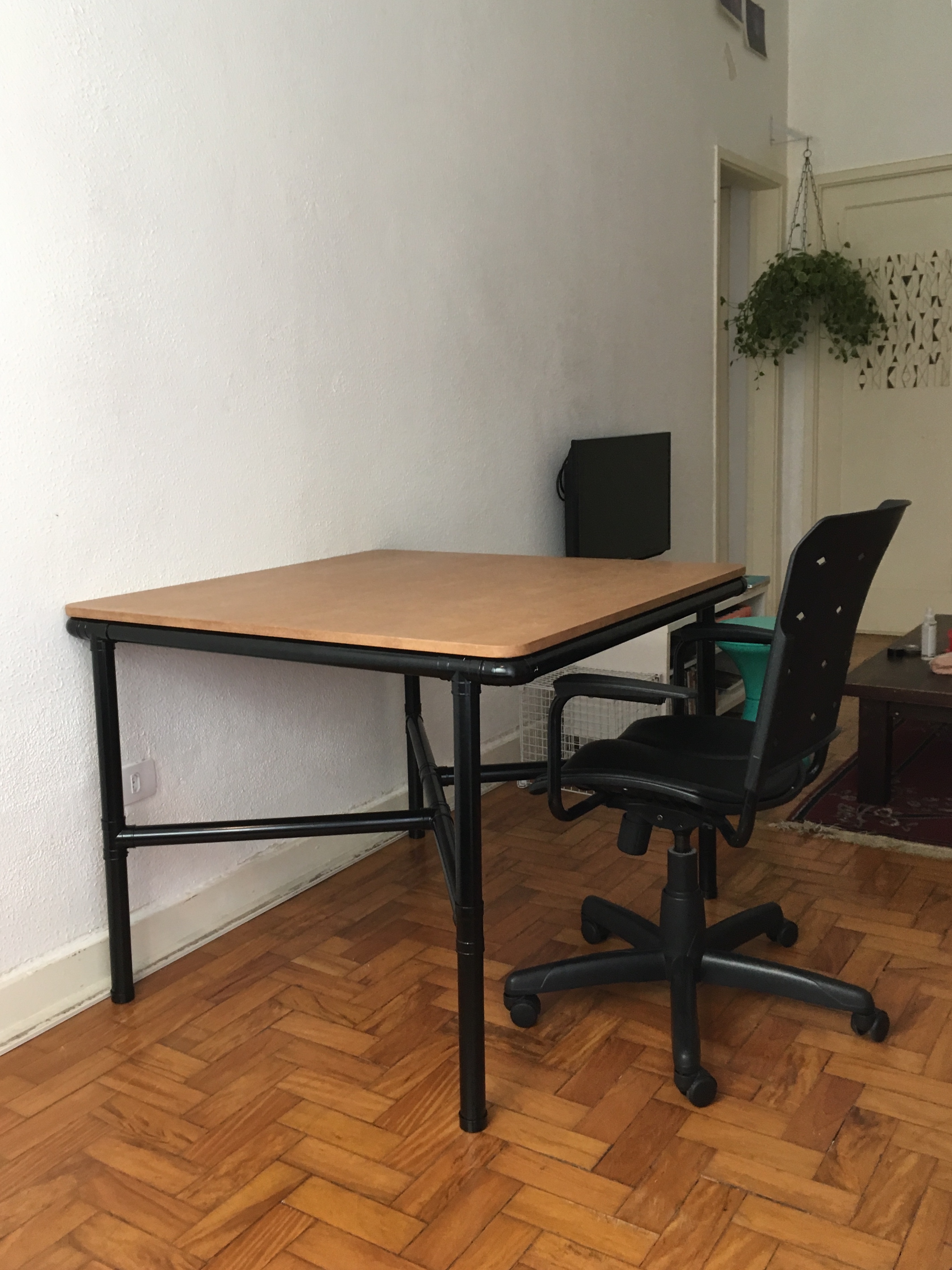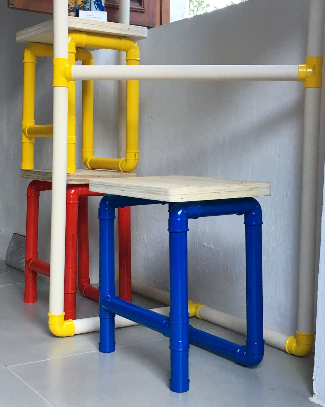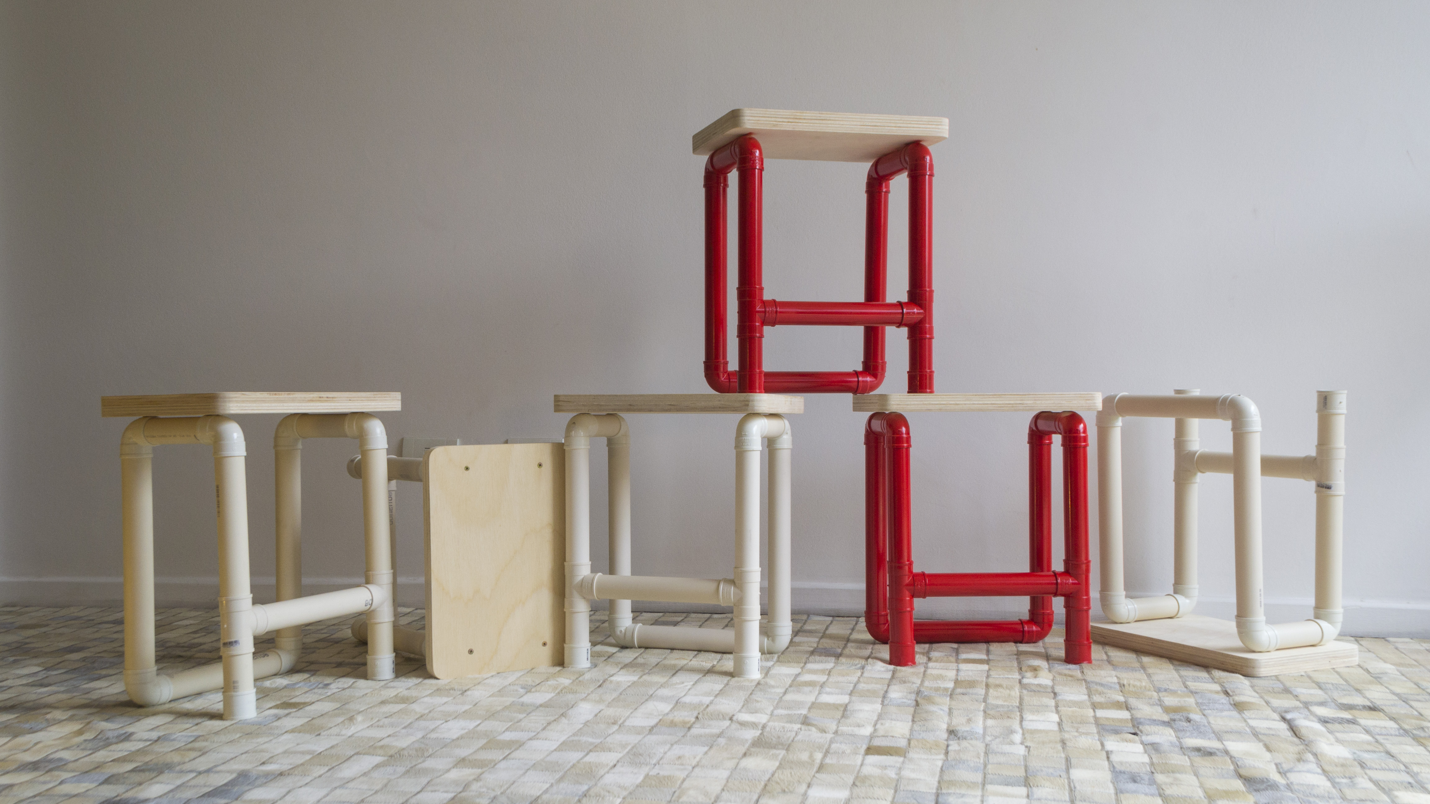 Projeto autoral de mobiliário feito com tubos e conexões de PVC. 2018.