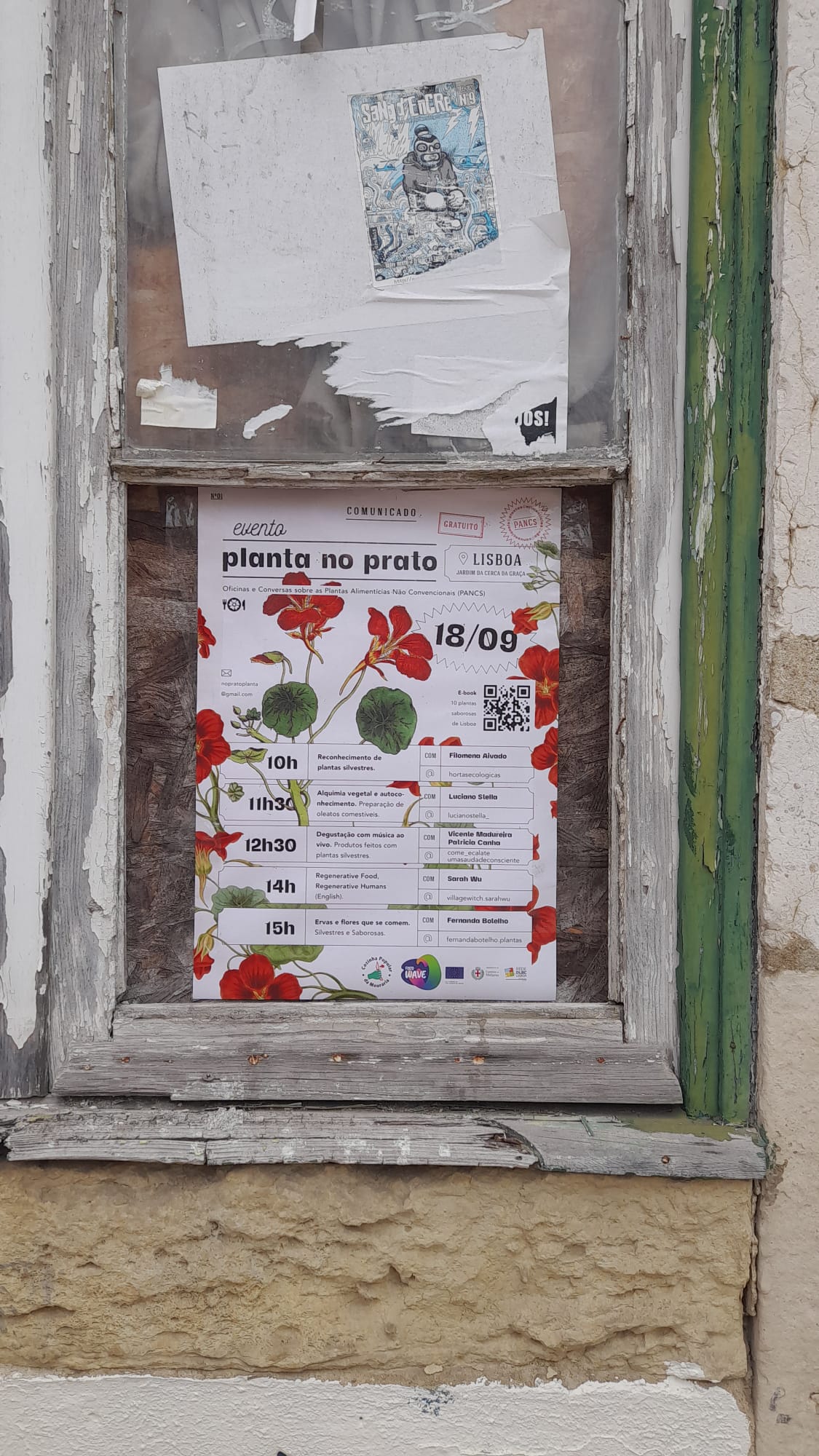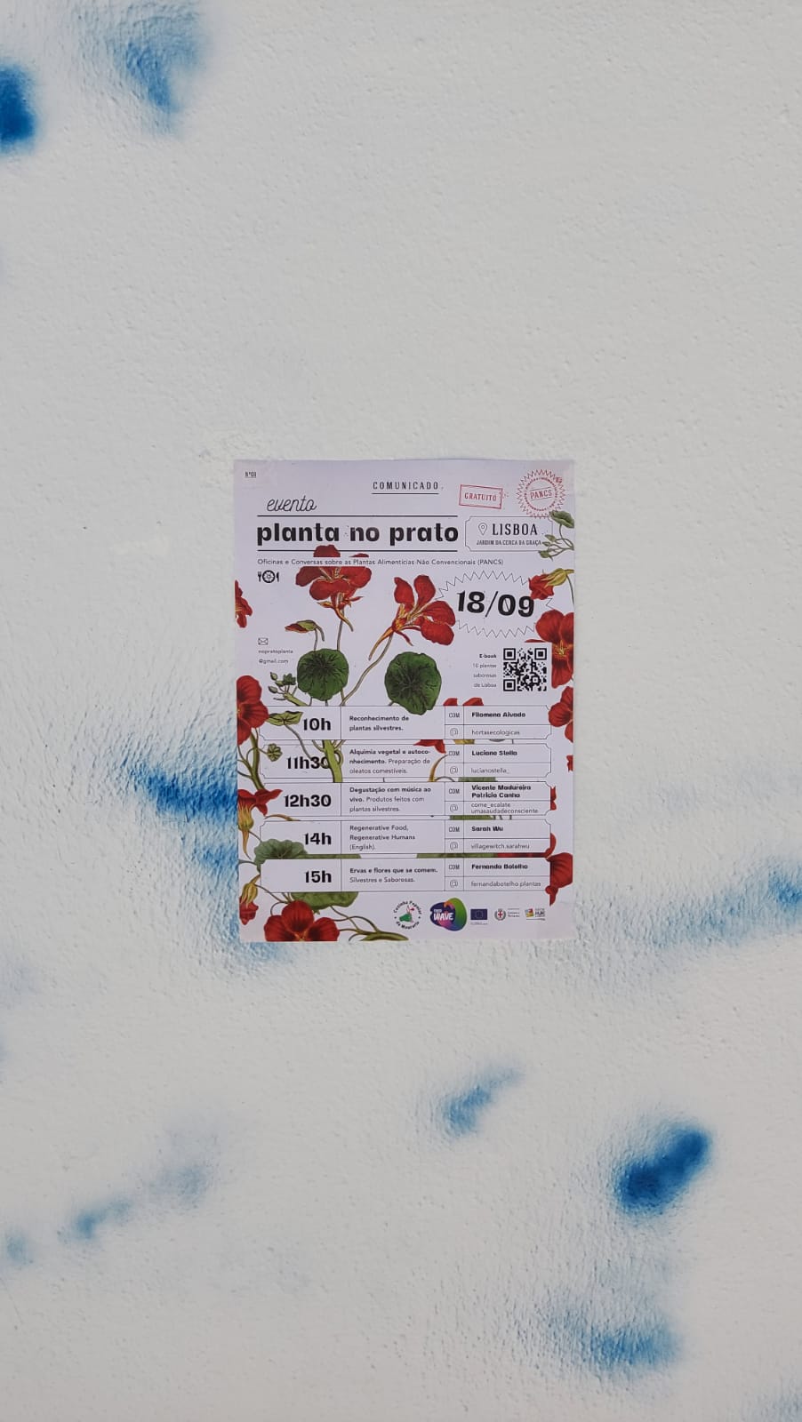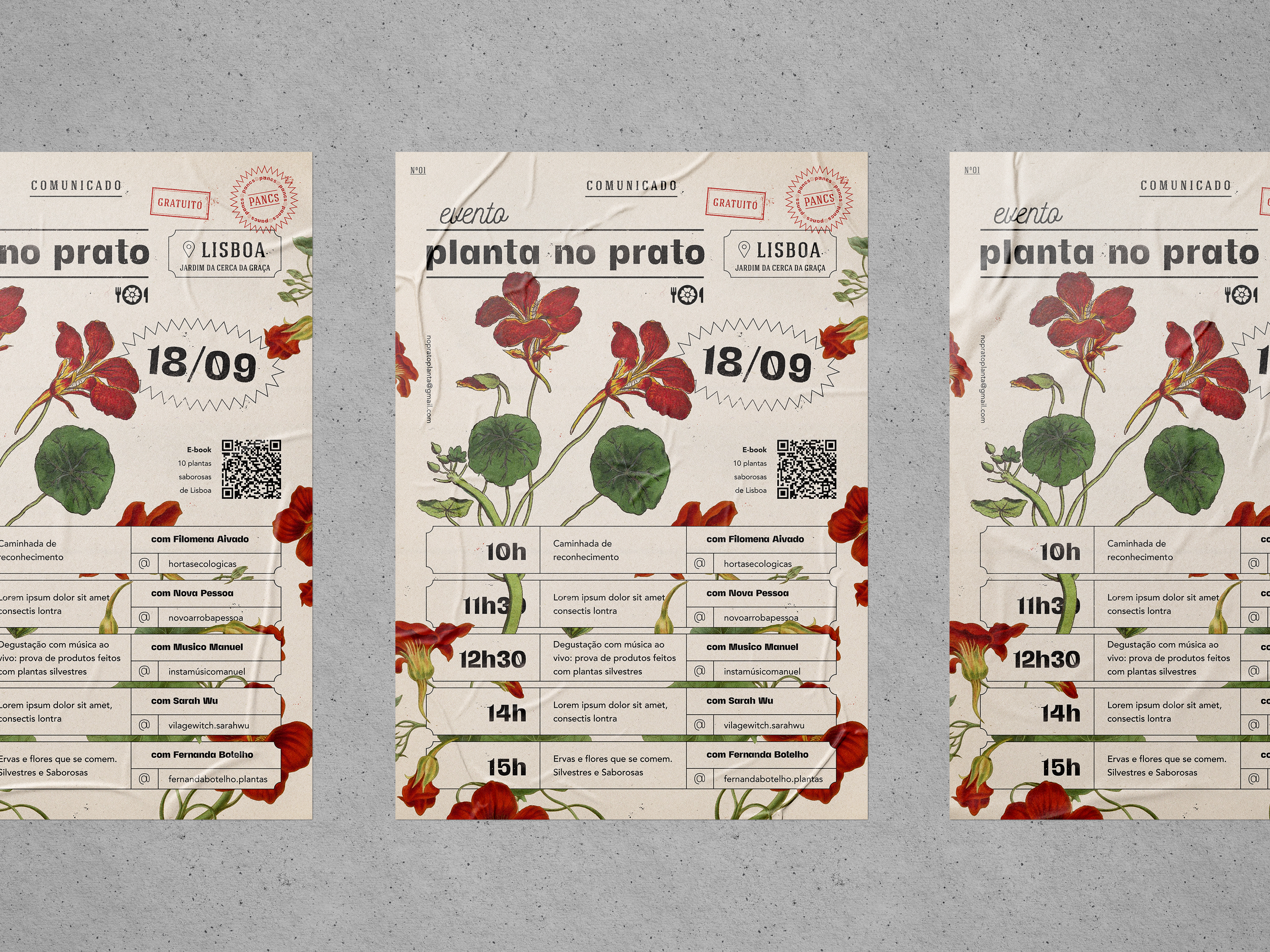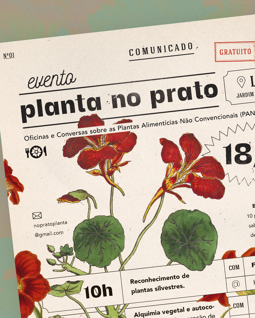 Printed poster and digital materials for the workshop “Planta no Prato — Workshops and Conversations on Unconventional Edible Plants (PANCs)”, held at Jardim da Cerca da Graça, in Lisbon, Portugal, in September 2022.