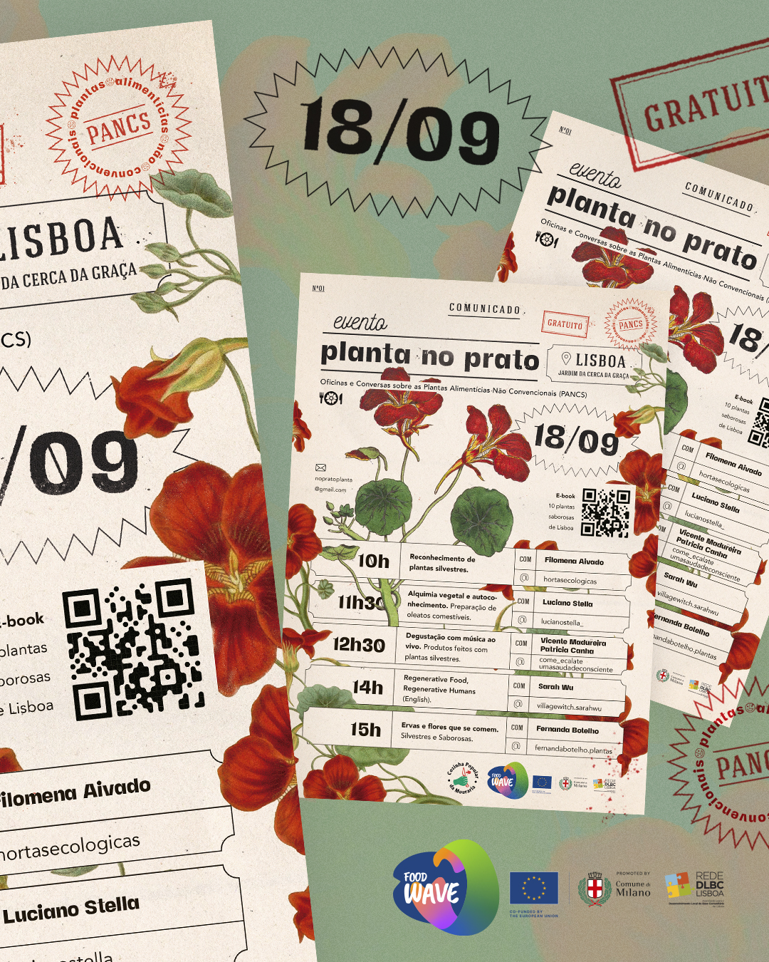 The event, organized by Cozinha Popular da Mouraria, was part of the European project Food Wave, aimed at promoting knowledge and encouraging the consumption of Unconventional Edible Plants (PANCs).
