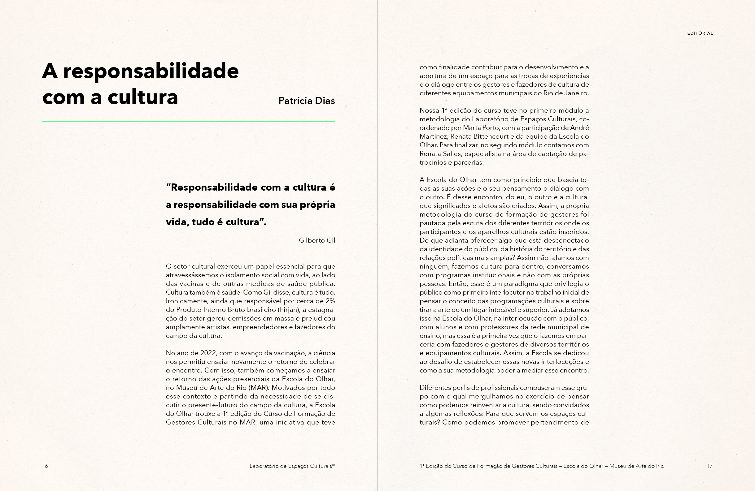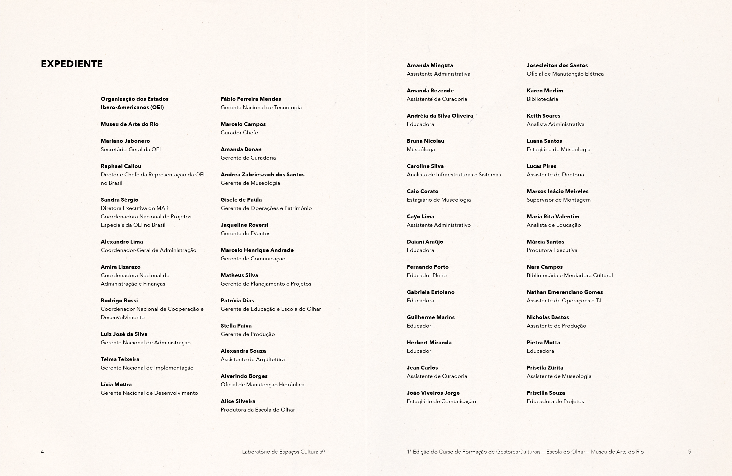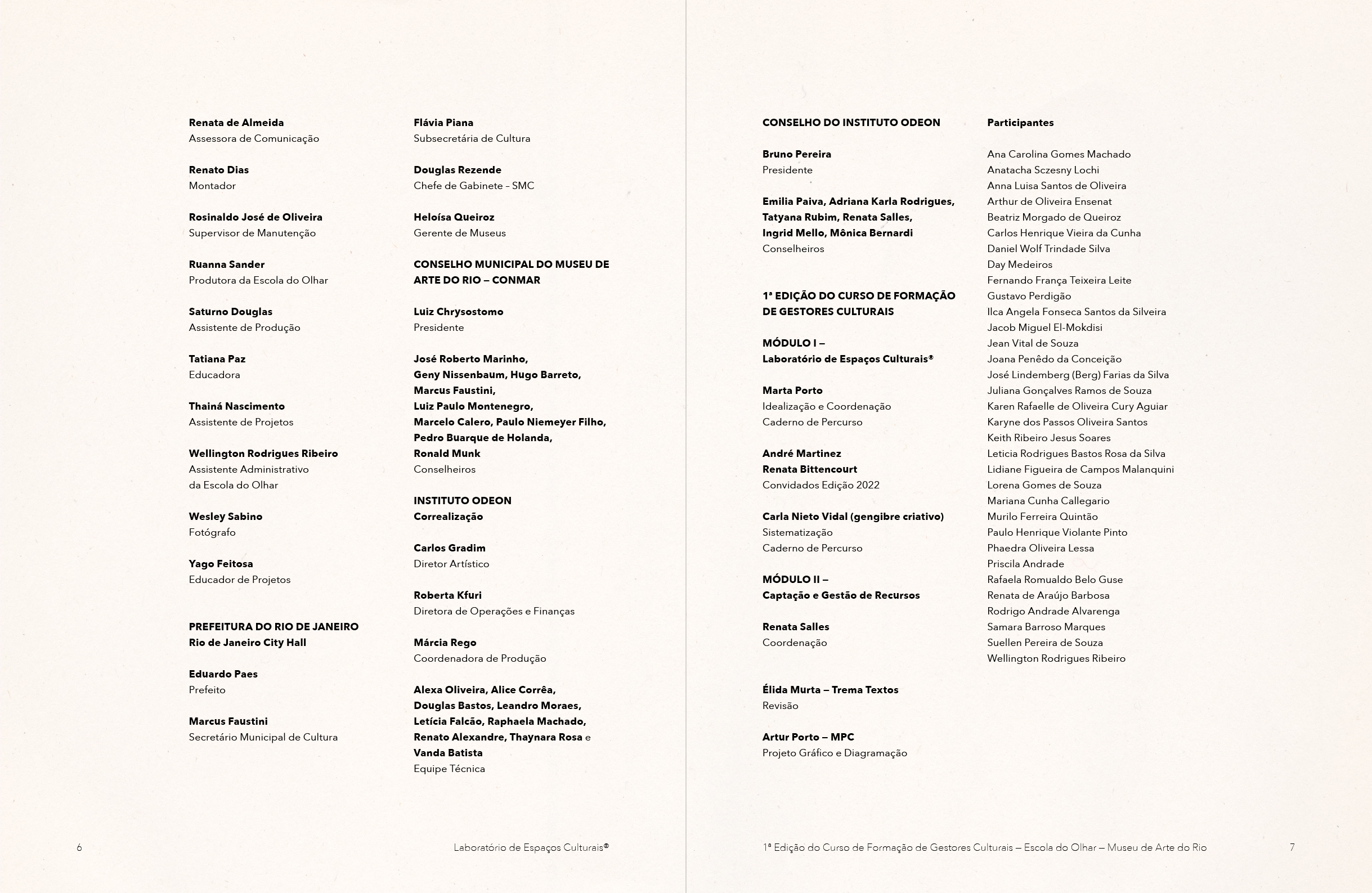 REVISTA do Laboratório de Espaços Culturais. 1ª edição do curso de Formação de Gestores Culturais, realizado na Escola do Olhar — Museu de Arte do Rio (2022).