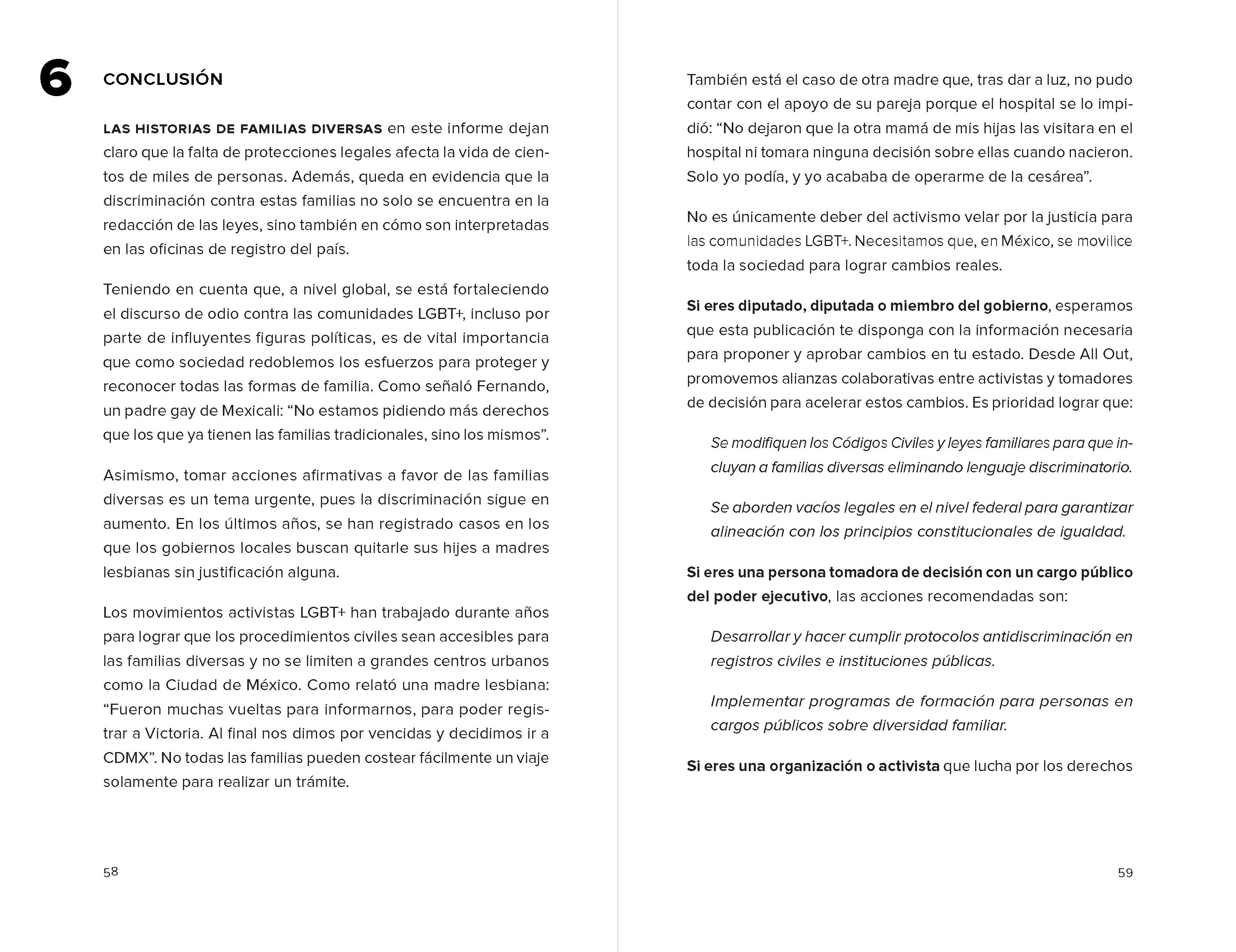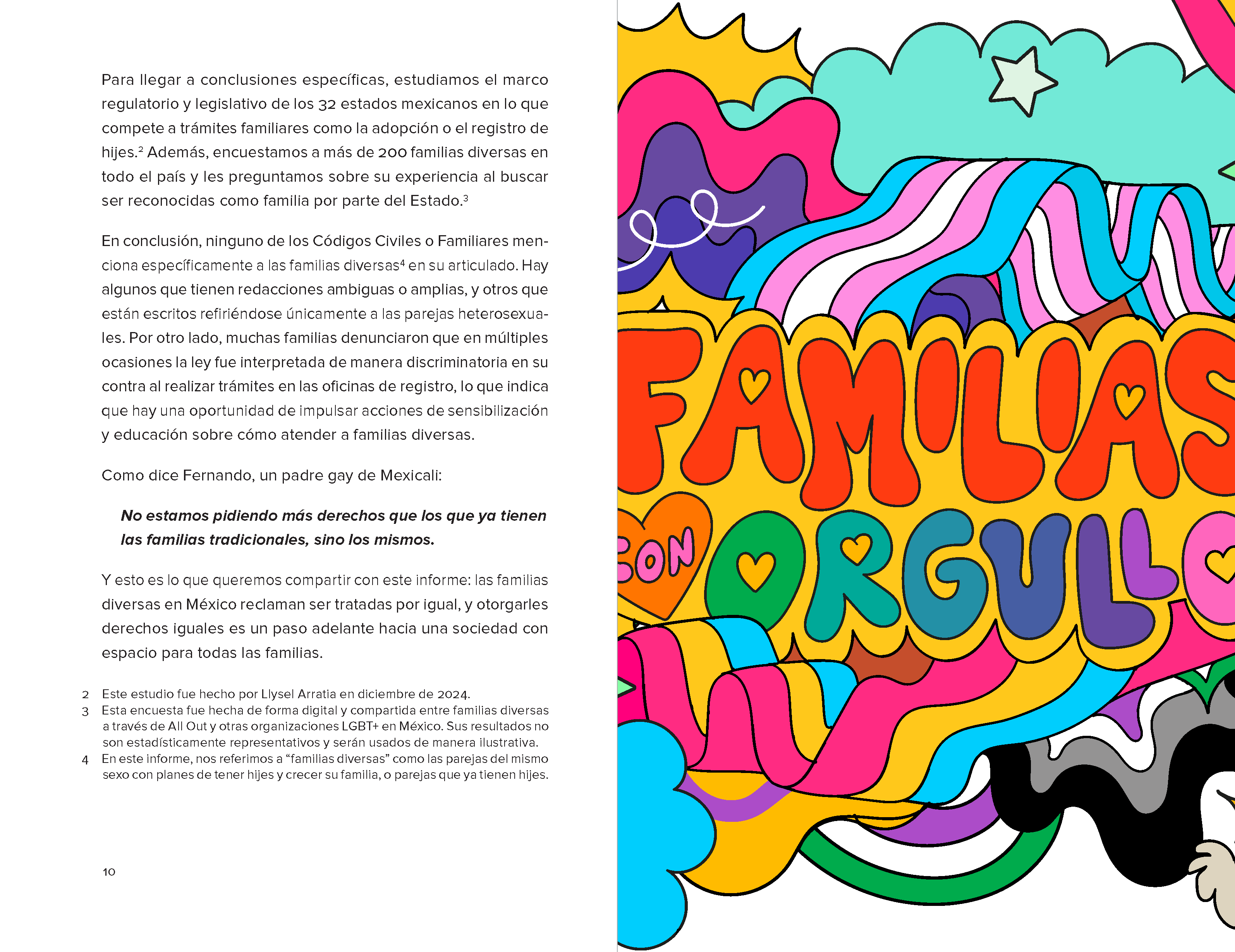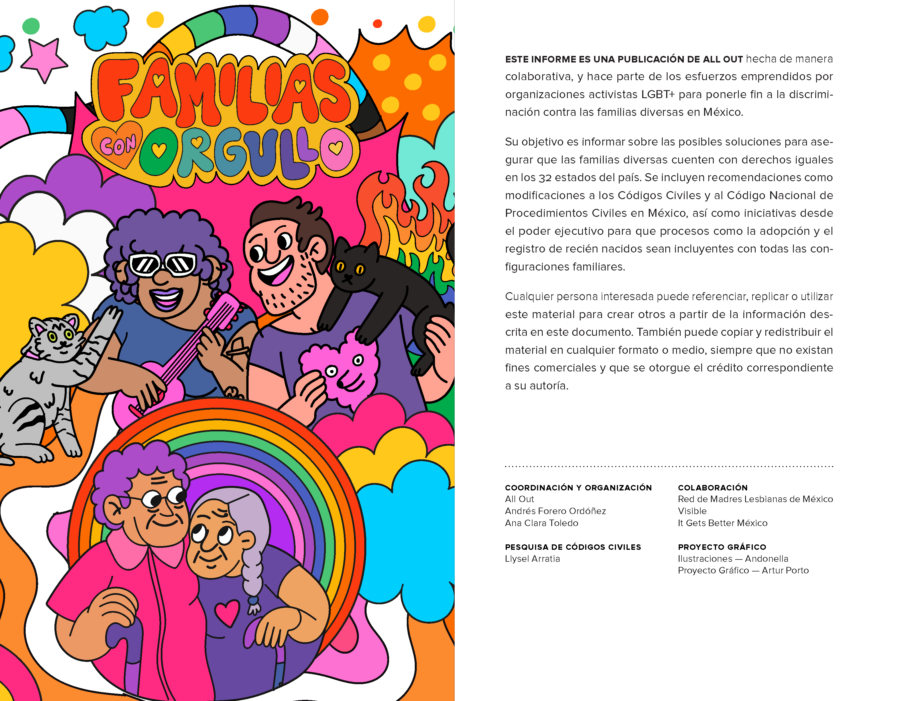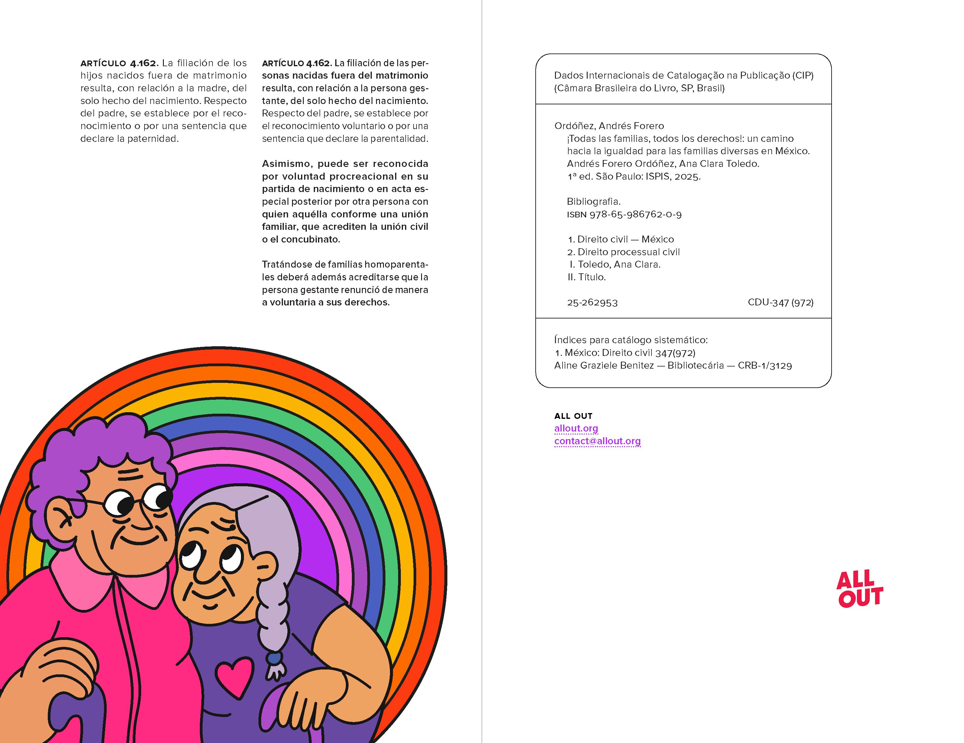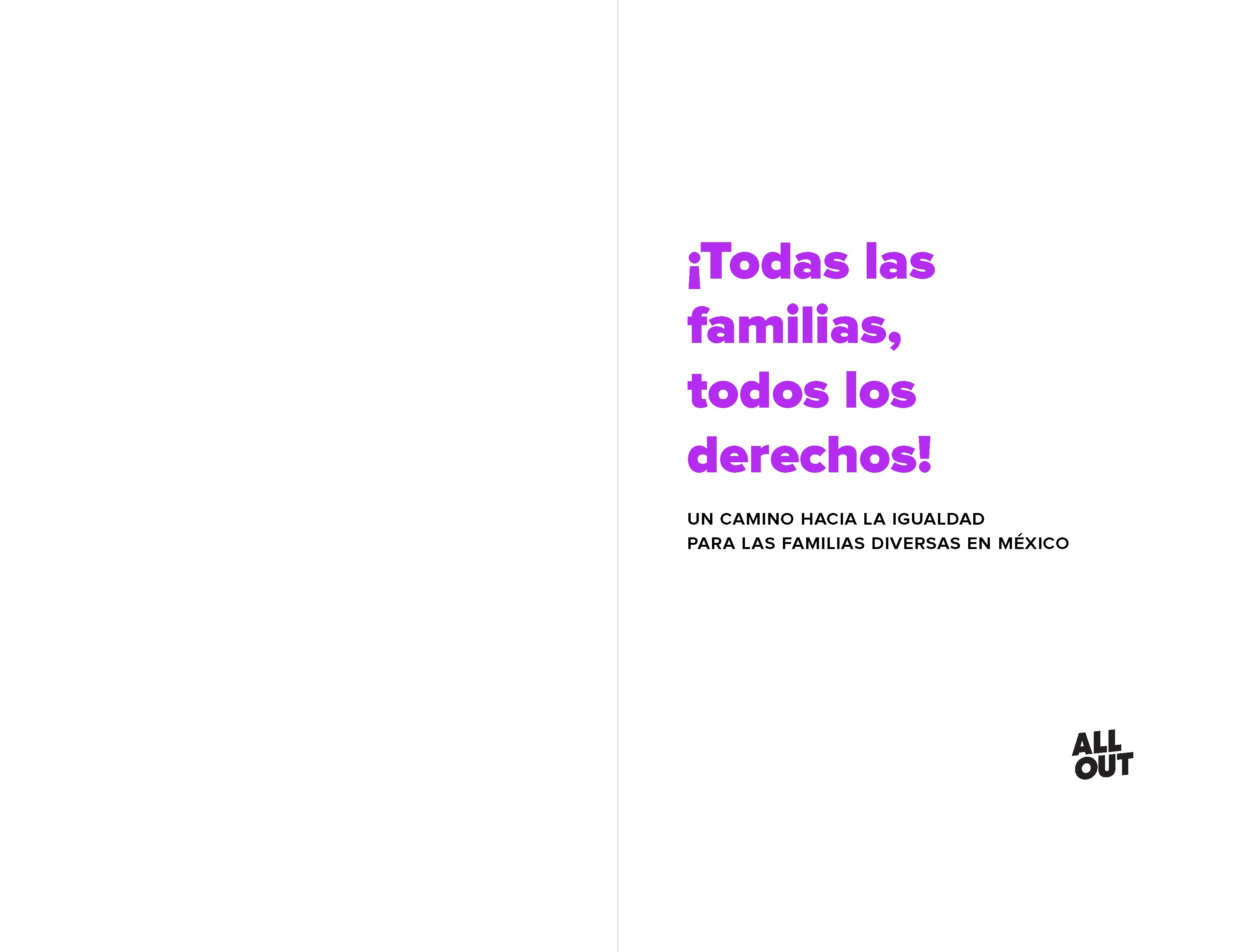 The book ¡Todas las familias, todos los derechos!Un camino hacia la igualdad para las familias diversas en México is a report from the LGBT+ rights NGO All Out that analyzes all 32 civil codes across Mexican states to expose how legal barriers harm diverse families, and what can be done to change that. "Whether you're a same-sex couple dreaming of starting a family, an LGBT+ activist fighting for equality, or a government official shaping policy – this report is essential reading".