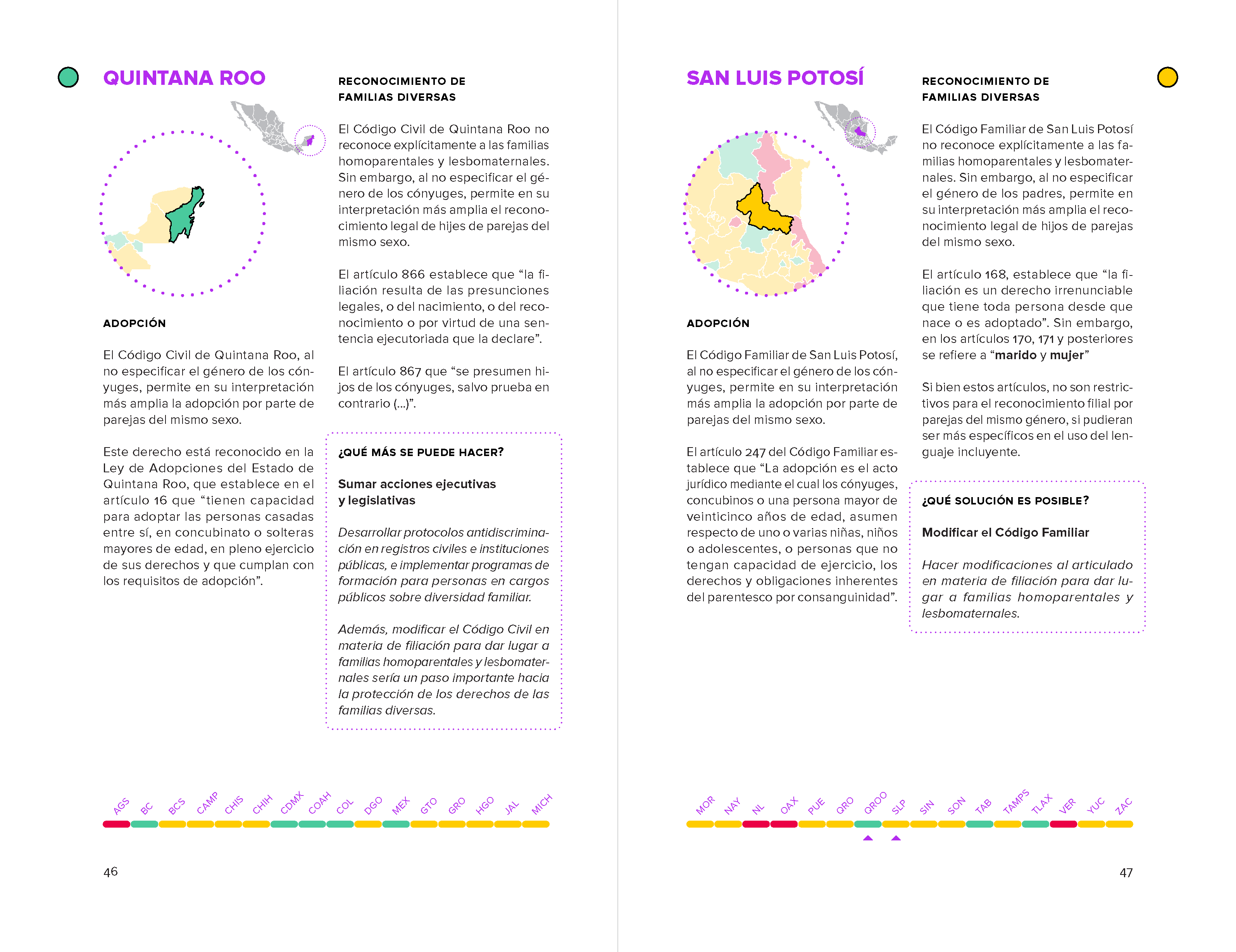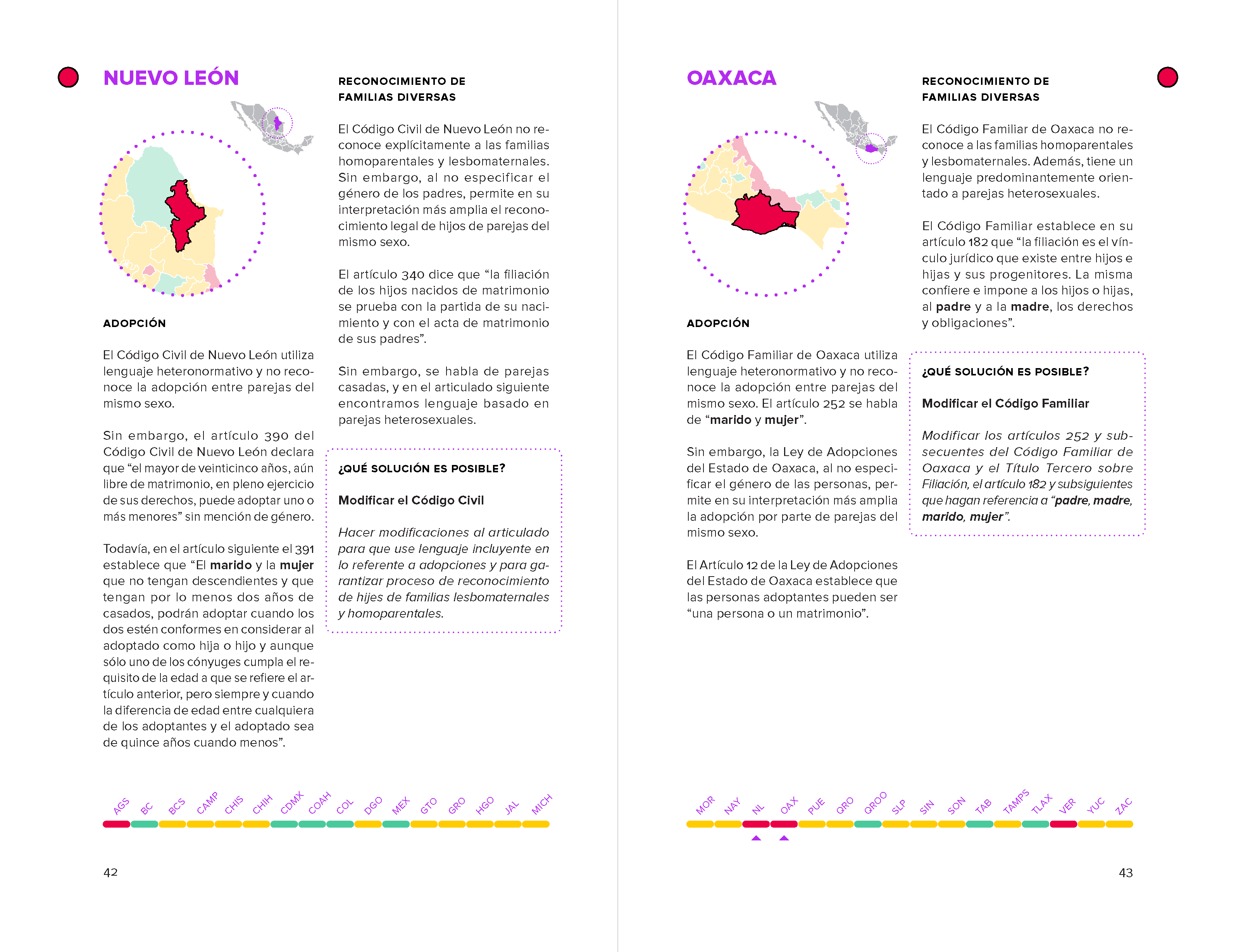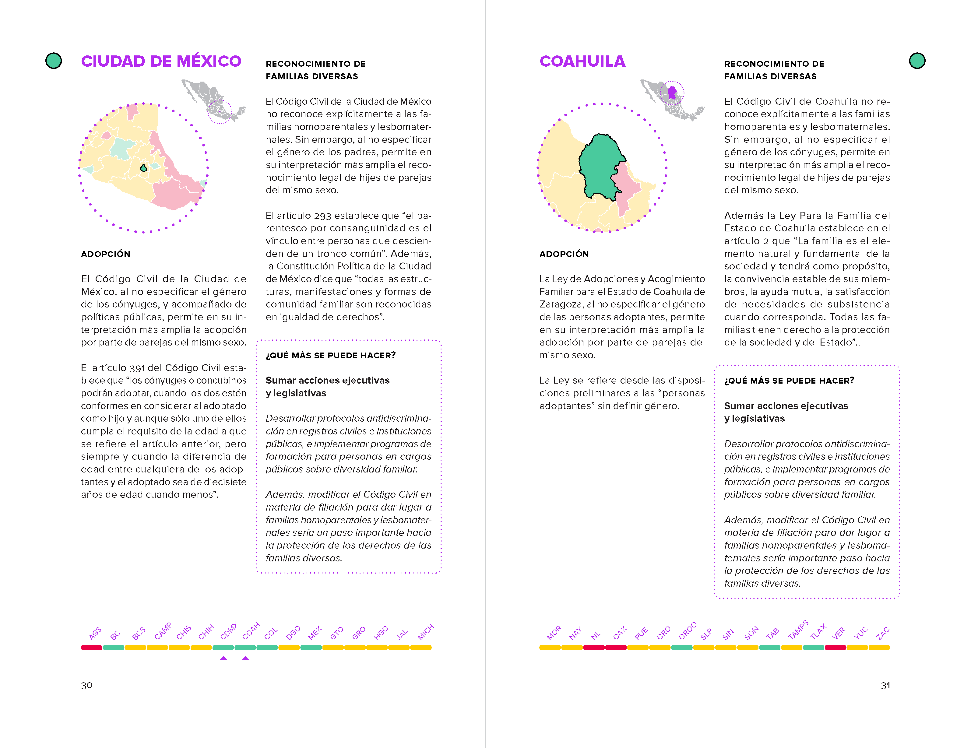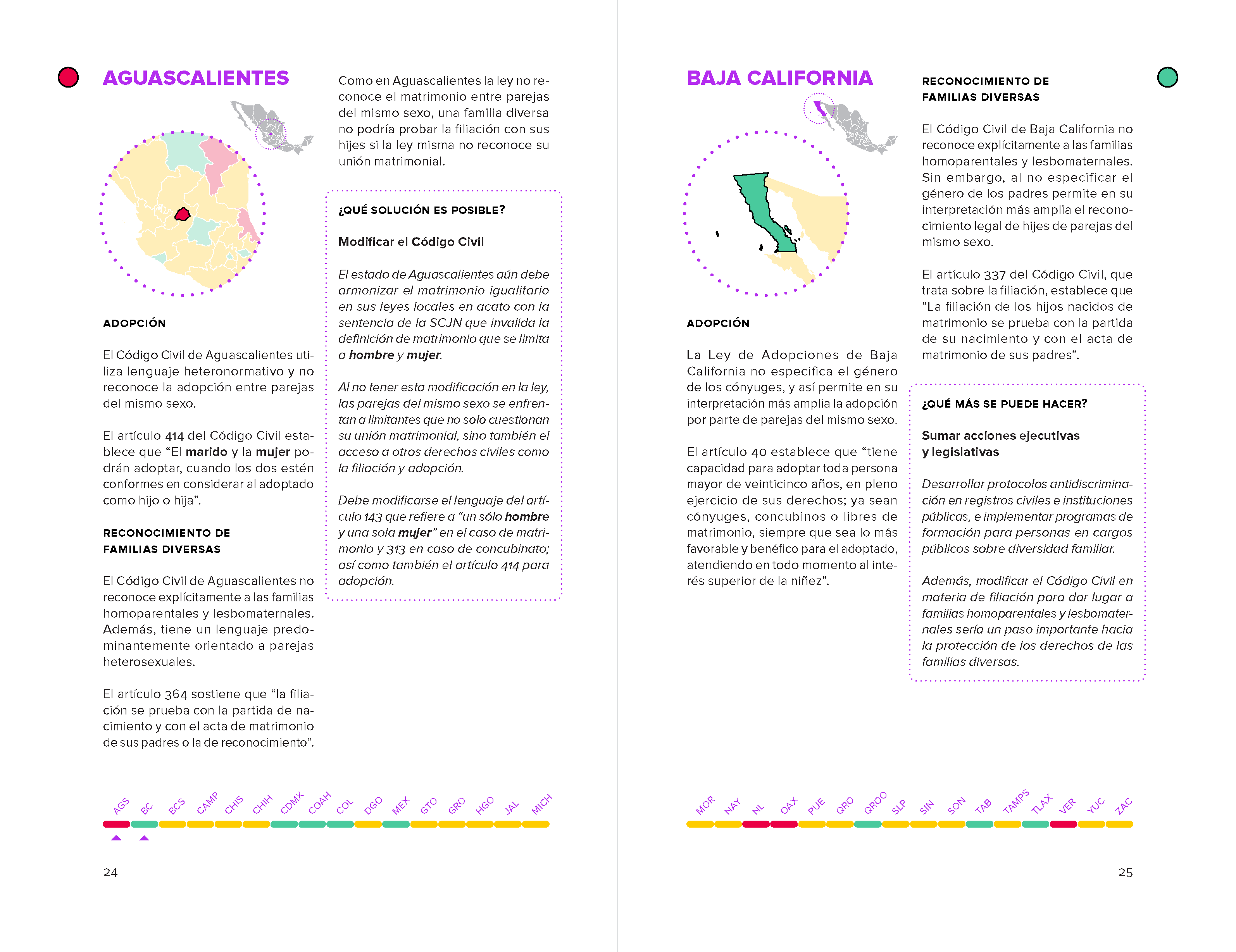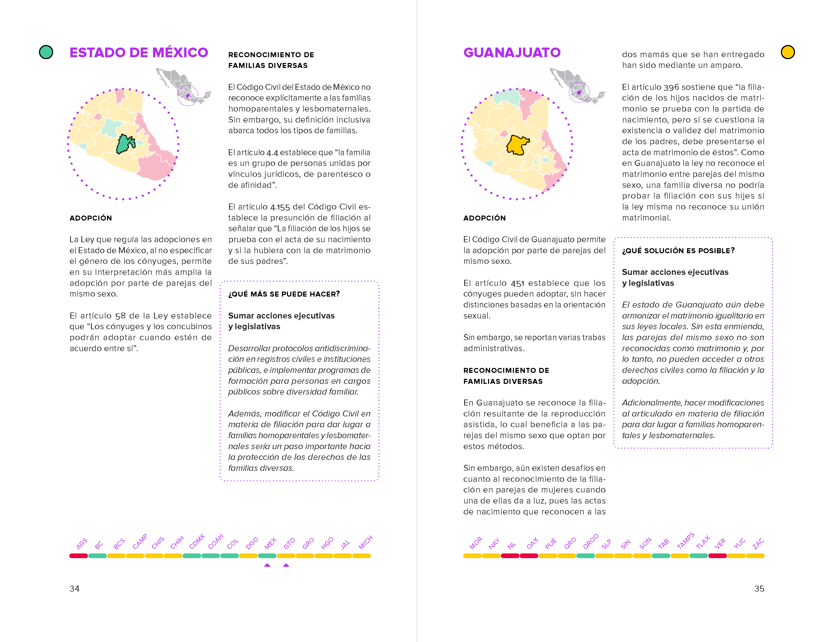 The book ¡Todas las familias, todos los derechos!Un camino hacia la igualdad para las familias diversas en México is a report from the LGBT+ rights NGO All Out that analyzes all 32 civil codes across Mexican states to expose how legal barriers harm diverse families, and what can be done to change that. "Whether you're a same-sex couple dreaming of starting a family, an LGBT+ activist fighting for equality, or a government official shaping policy – this report is essential reading".
