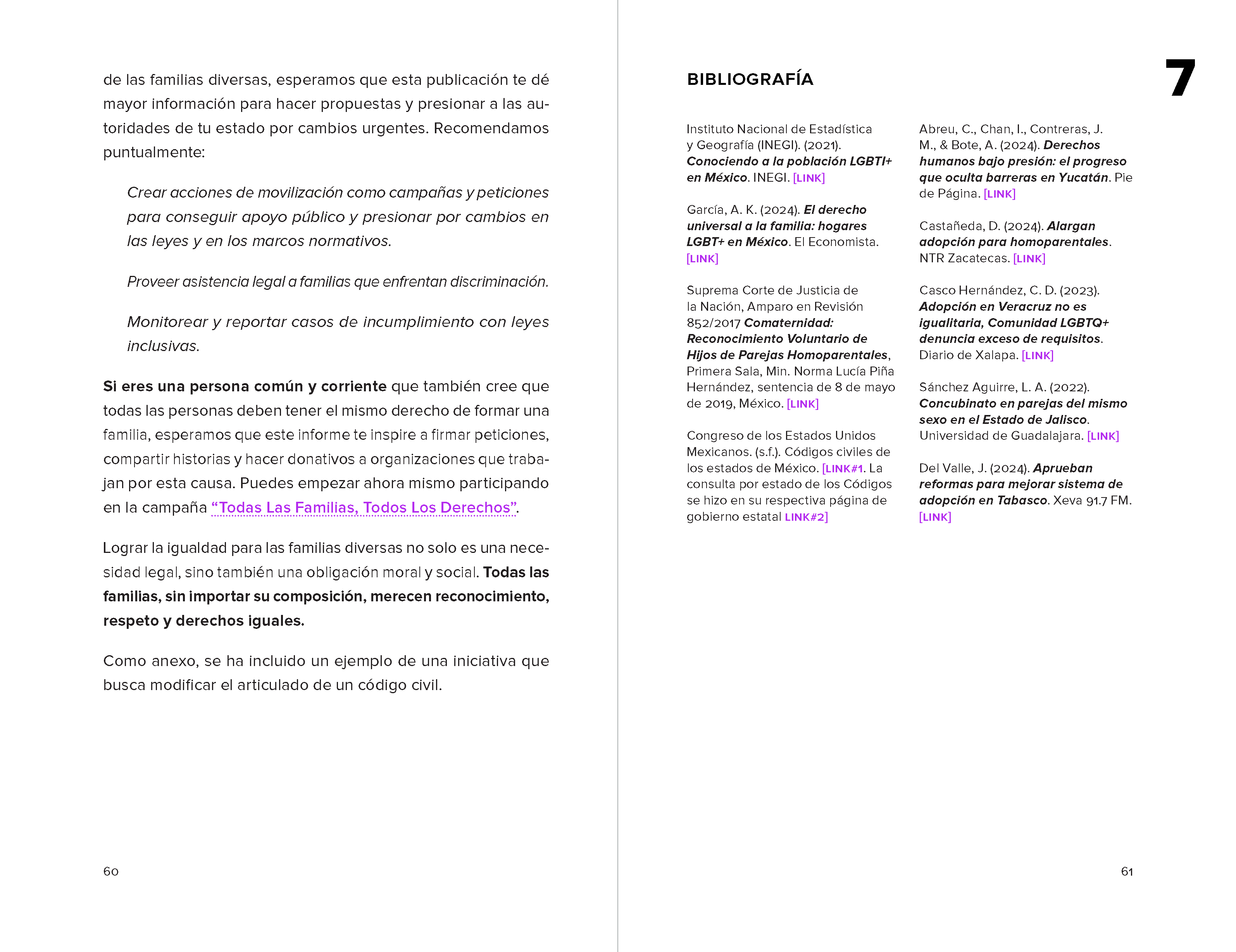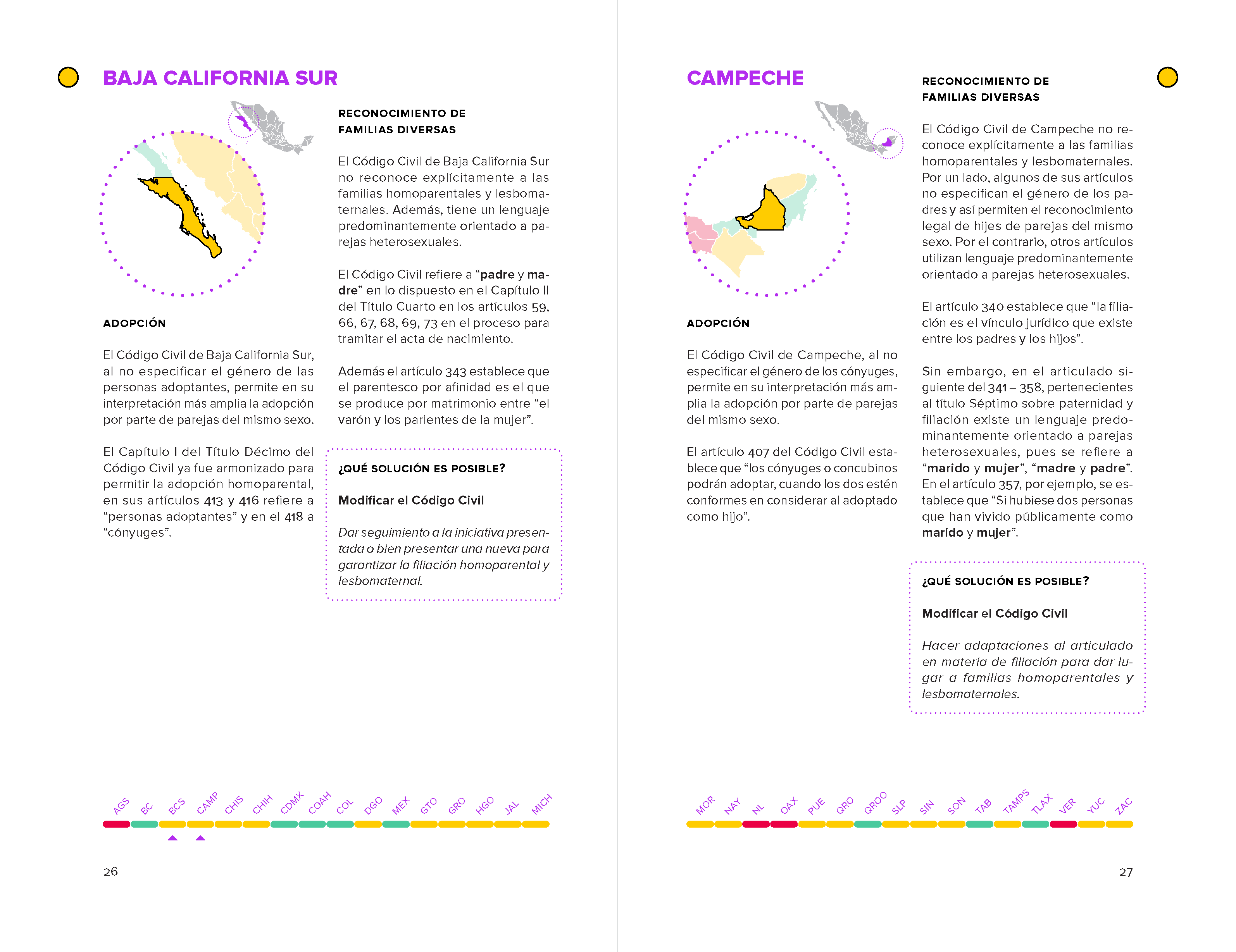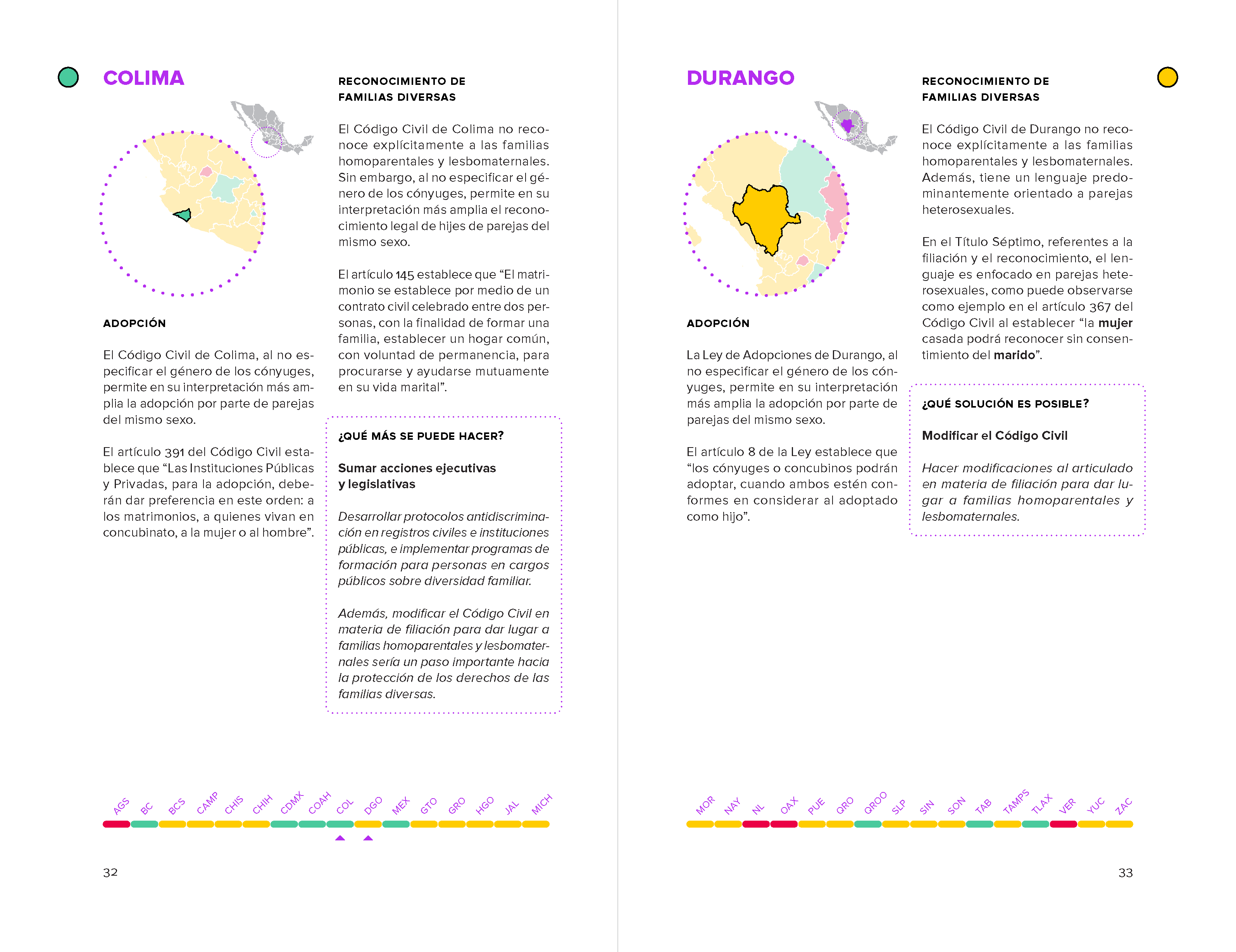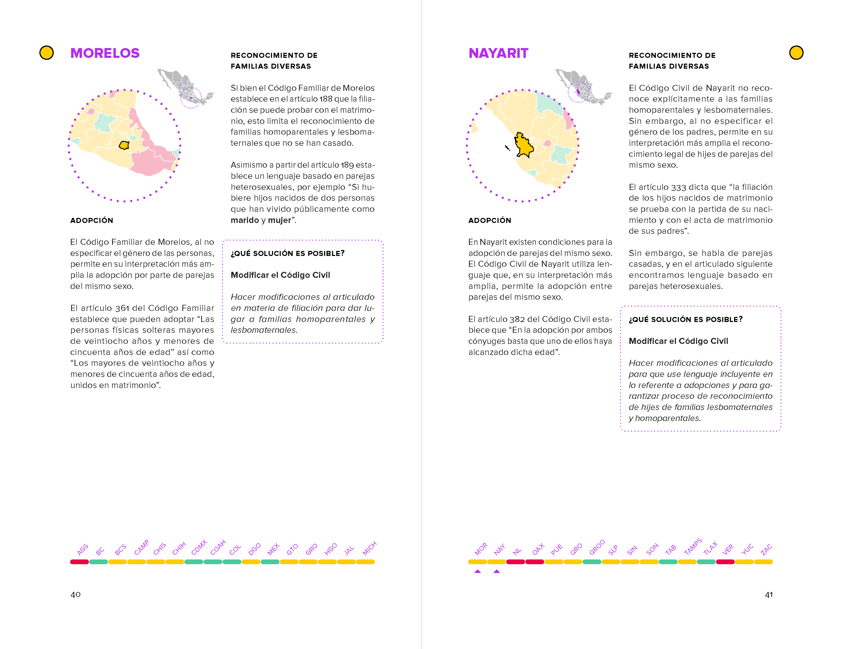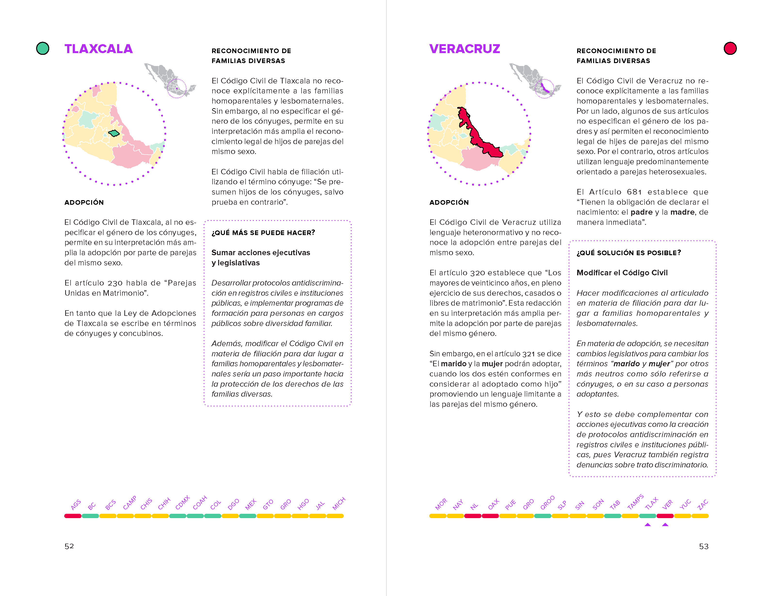 The book ¡Todas las familias, todos los derechos!Un camino hacia la igualdad para las familias diversas en México is a report from the LGBT+ rights NGO All Out that analyzes all 32 civil codes across Mexican states to expose how legal barriers harm diverse families, and what can be done to change that. "Whether you're a same-sex couple dreaming of starting a family, an LGBT+ activist fighting for equality, or a government official shaping policy – this report is essential reading".