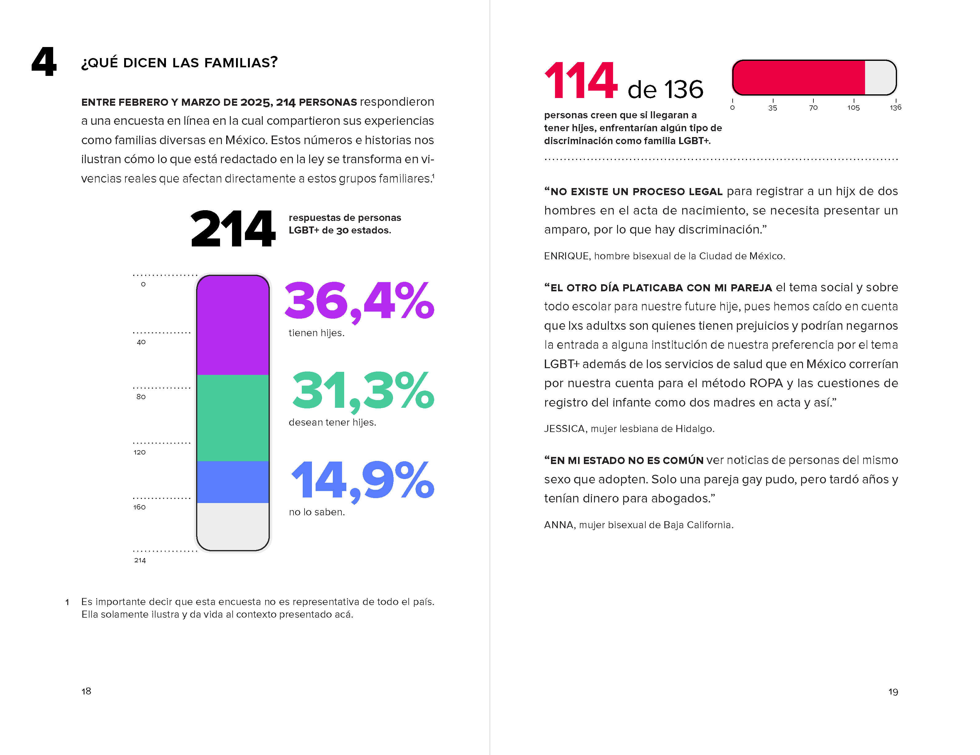 The report brings a state-by-state analysis and a research. Between February and March 2025, 214 people shared their personal stories and struggles as part of an online survey on life as a diverse family in Mexico.